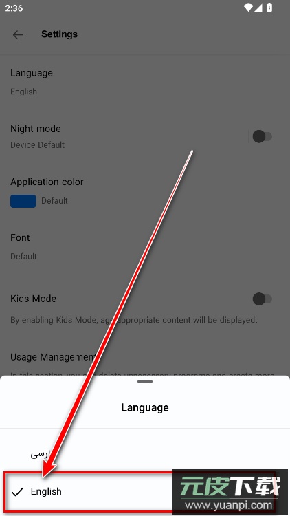 4、接着在语言列表里点选English;