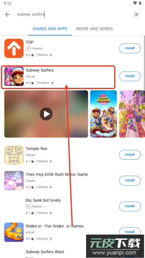 3、例如搜索地铁跑酷,可输入Subway Surfers;