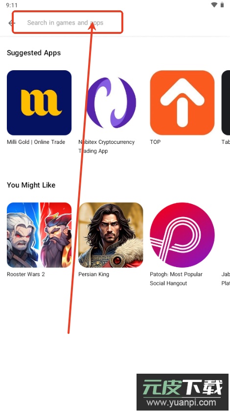 2、在搜索框内输入你想要查找的应用或游戏名称;