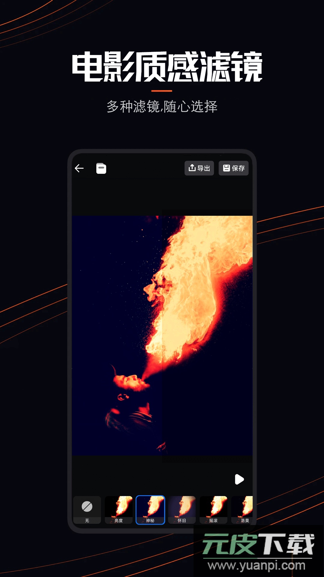 2、滤镜库:内建多款具有电影质感的滤镜效果。