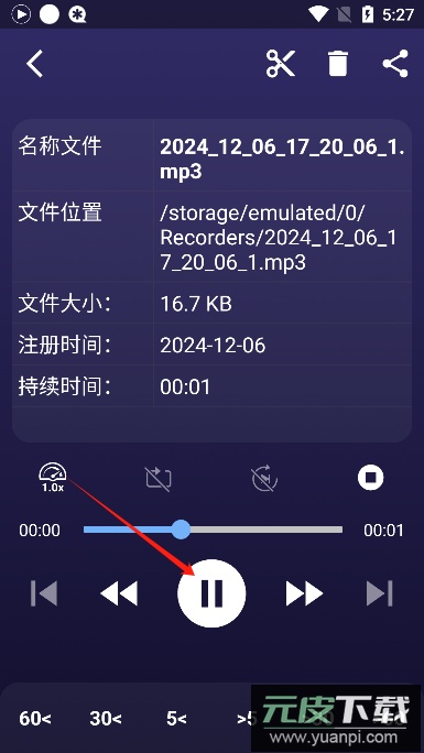 4、录音文件支持在线播放,点击文件上方播放按钮即可