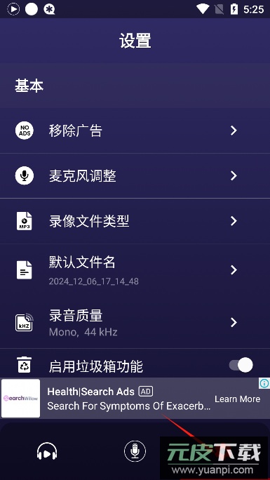 3、通过右下角设置菜单调整录音质量、麦克风等参数
