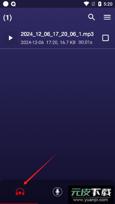 2、录音结束后点击左下角耳机图标可查看录音文件