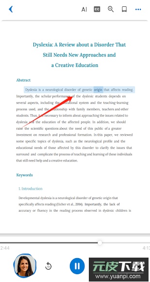 3、打开需要朗读的文章,点击界面右下角的播放按钮即可开始语音播放。