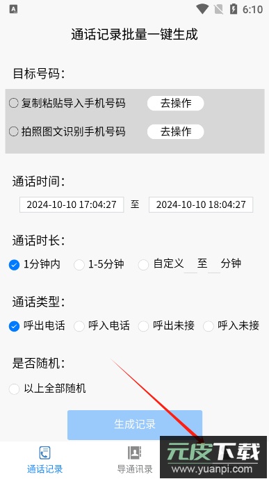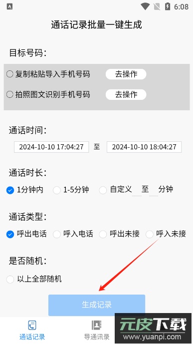 5、设置完成后点击生成按钮,即可批量自动创建虚拟通话记录,步骤简单且高效