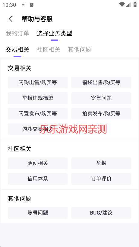 3、在帮助与客服界面中,选择需要咨询的问题类型。