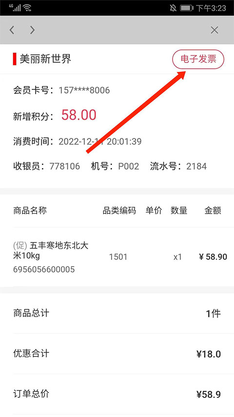 4、在订单详情页,点击右上角“电子发票”选项,开始开票流程。
