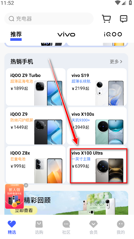 1.进入vivo商城,挑选并点击想要购买的手机型号。