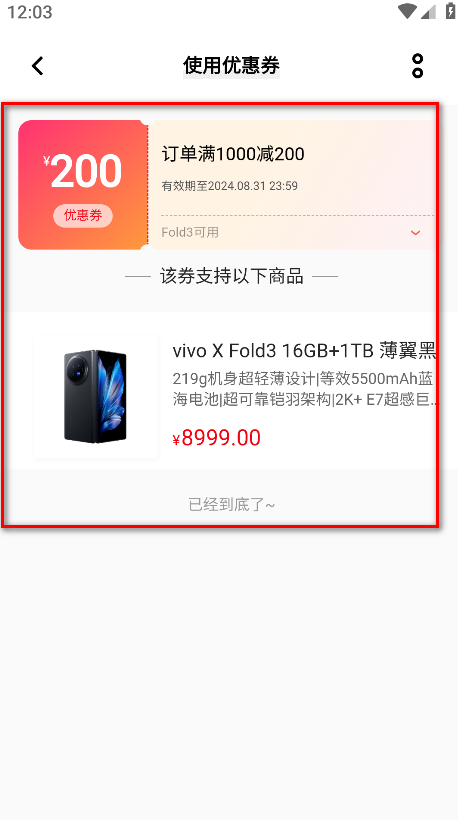 4.页面会展示该优惠券支持购买的具体商品,其他优惠券使用方法与此相同。