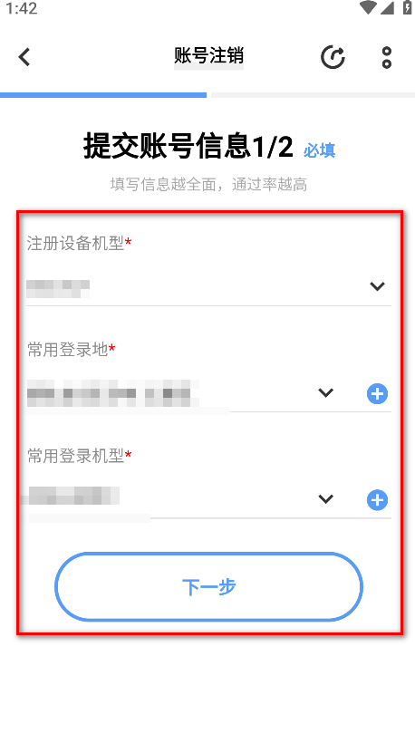 9.填写必填的账号信息,点击下一步。