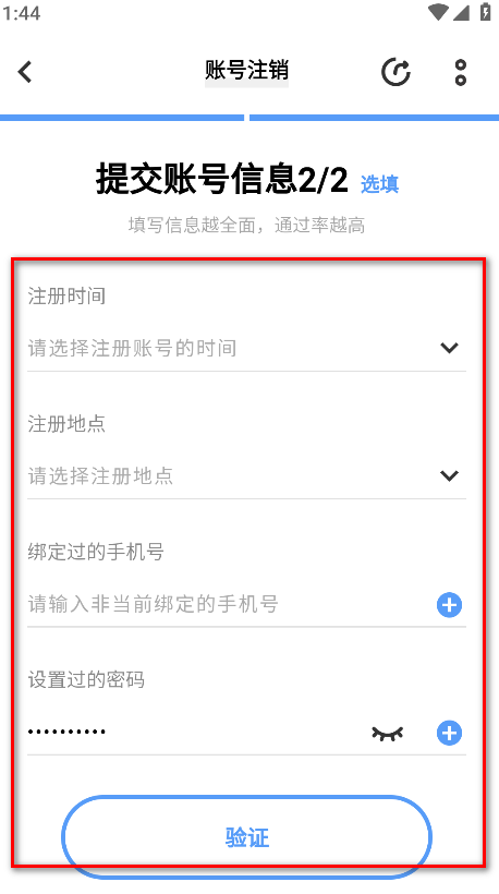 10.补充选填的账号信息,点击验证。