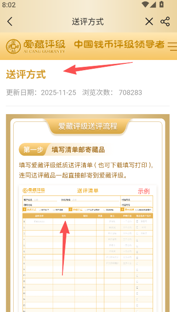 2、在此熟悉送评规则,选择你要送评的藏品。