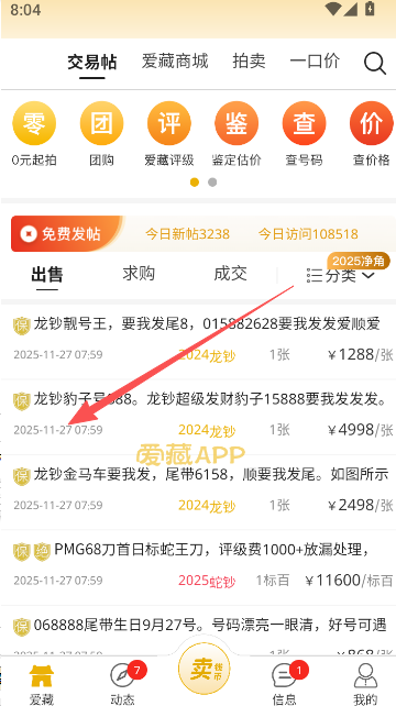 2、在发帖区选择自己心仪的藏品,进入详情页面内进行交易。