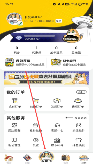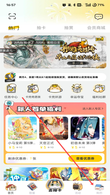 4、进入抽卡界面,即可开始抽取心仪的卡片。