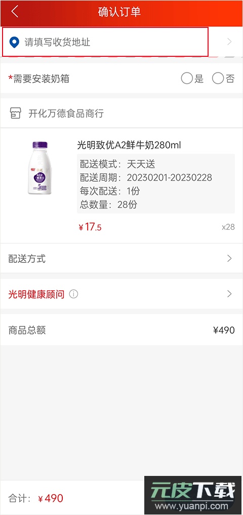 1、首先打开光明随心订app,定位您所在的位置,确认收货地址是否正确。