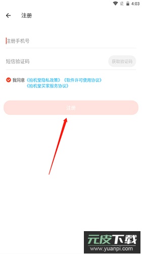 3、输入手机号码与验证码,点击注册按钮即可完成。