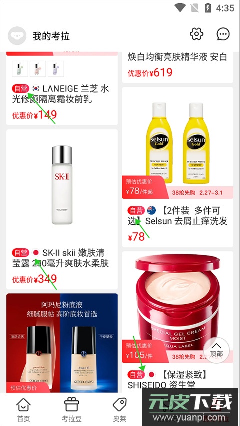 识别自营商品的方法很简单,凡是带有【自营】标识的(下图绿色箭头所指)均为官方自营商品。