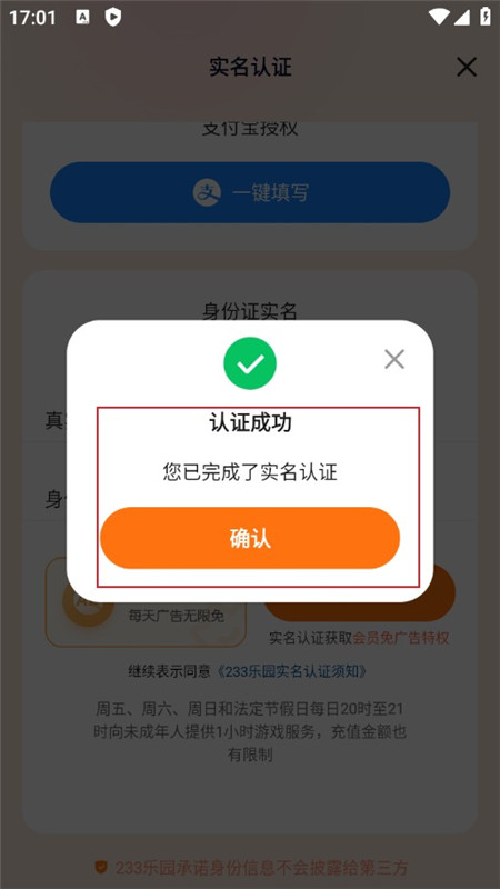 6.实名认证审核通过之后,你就可以使用233乐园提供的更多专属功能和服务了;