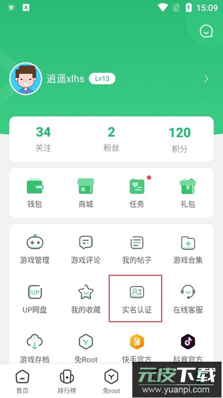 2. 在个人中心页面向下滑动,找到实名认证的功能入口,点击进入对应页面;