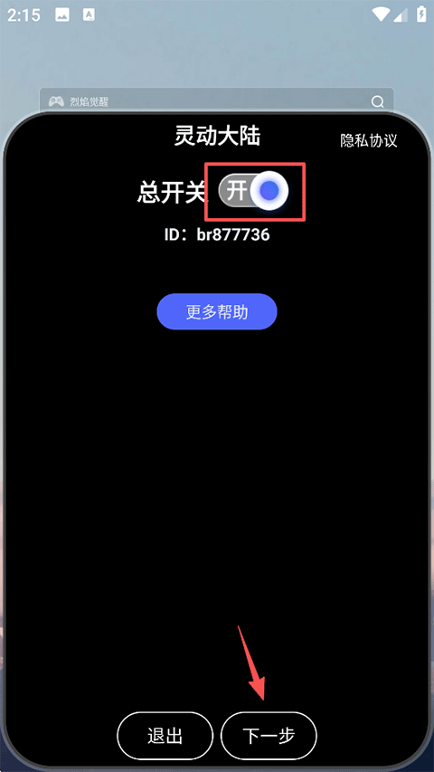 1、打开app就能启动总开关,点击下一步进入设置流程;