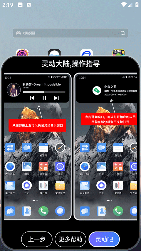 5、查看页面下方的灵动大陆操作指引,最后点击灵动吧按钮就能开启灵动岛相关体验;