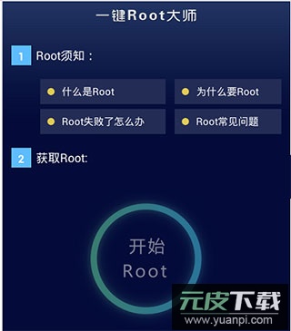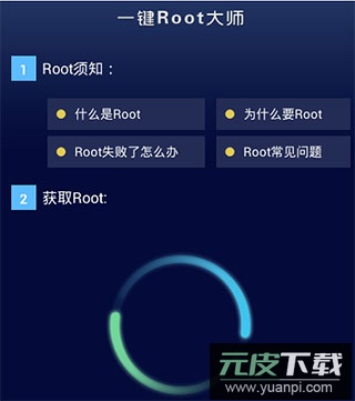 2、进入软件主界面,点击中间的root按钮,即可开始一键获取权限的流程;