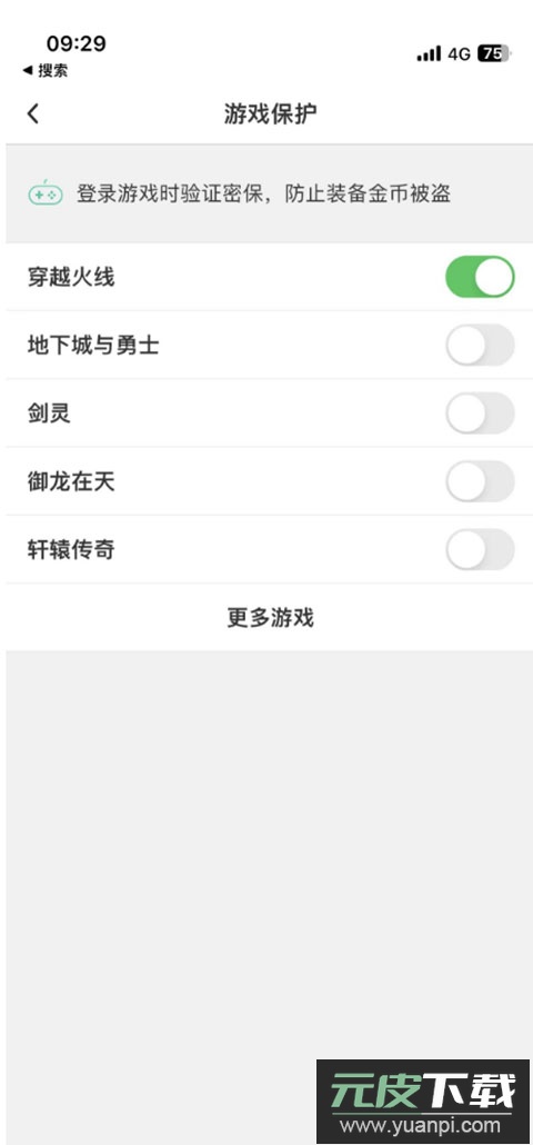 3、系统会展示用户常玩的游戏列表,从中选择需要保护的游戏;