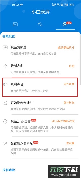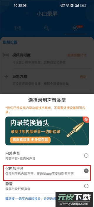 3、在声音录制选项中,确保勾选“仅内部声音”以录制应用内的音频。
