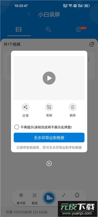 5、录制结束后,点击“无水印导出到相册”,即可保存您的视频文件。