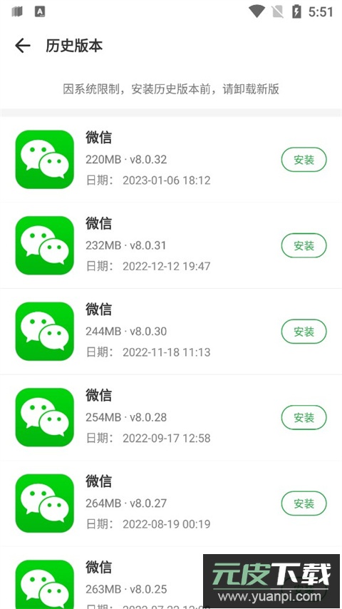 3、页面会列出所有可用的历史版本,选择你需要的版本,点击安装按钮;