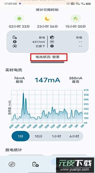 3、切换到“放电”页面,能够观察电池实时状况与电流输出数值;