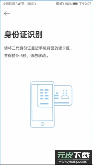 2、将身份证贴近手机背面进行识别,此功能需要手机具备NFC读取能力;