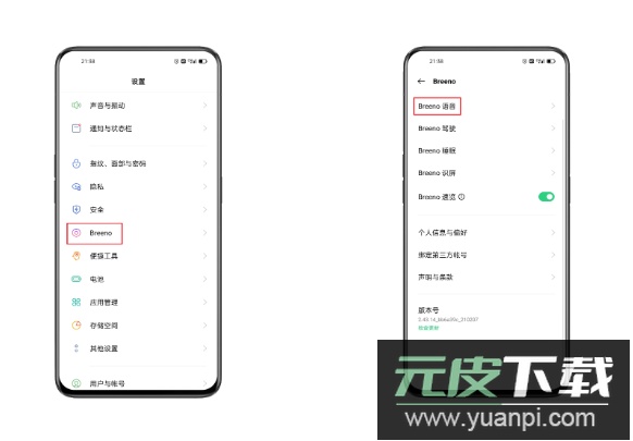 ColorOS 6-11.3版本:「 设置 > Breeno > Breeno语音」