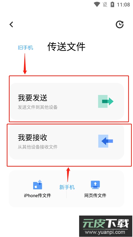 在旧手机上点击“我是旧手机”,新手机则选择“我是新手机”,随后等待识别或扫描二维码完成连接。