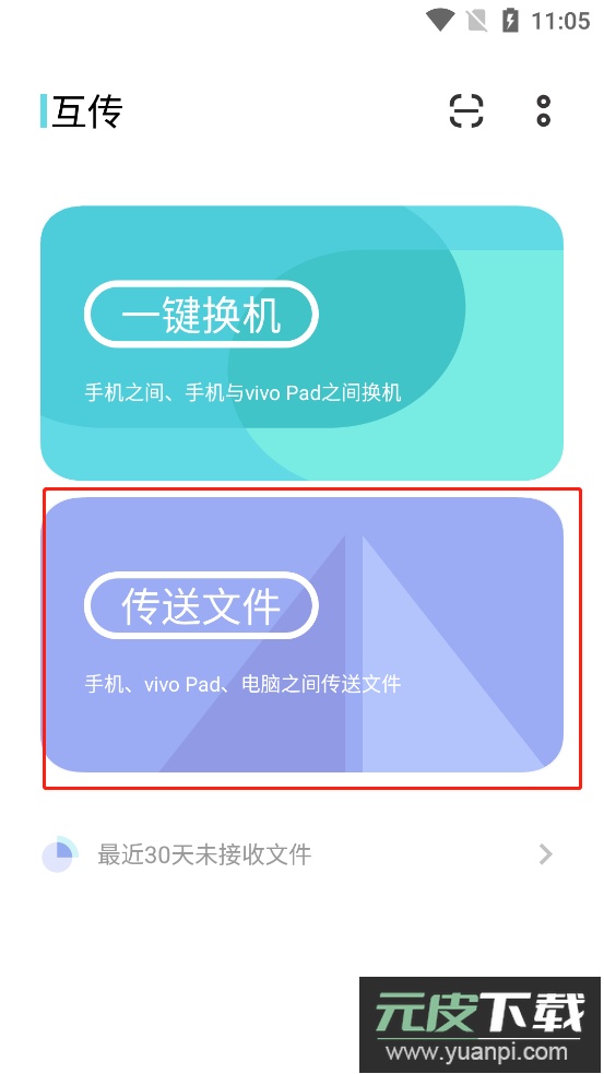 2、接收方同样打开应用,进入“传输文件”,点击“我要接收”。