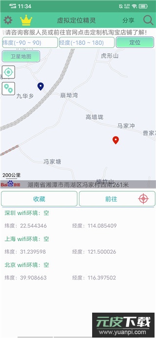 1、启动应用后,在主界面地图上滑动至期望修改的位置,点击即可选定;若需重复使用该地点,可将其加入收藏便于下次查找。
