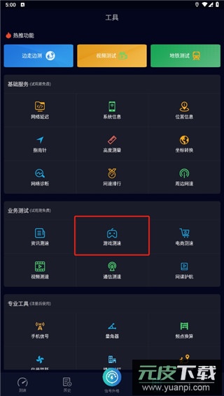 2、在工具列表中找到并进入游戏测速功能;