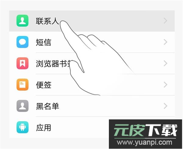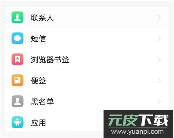 5、【短信】与【应用】等数据的备份操作与联系人备份步骤一致;