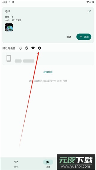 2. 在发送页面中,点击右上角的设置图标;