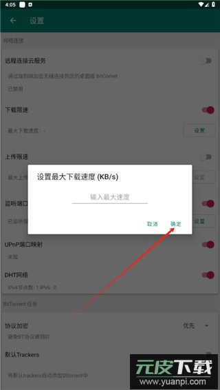 4. 输入期望的最大下载速度数值,确认后即可生效。