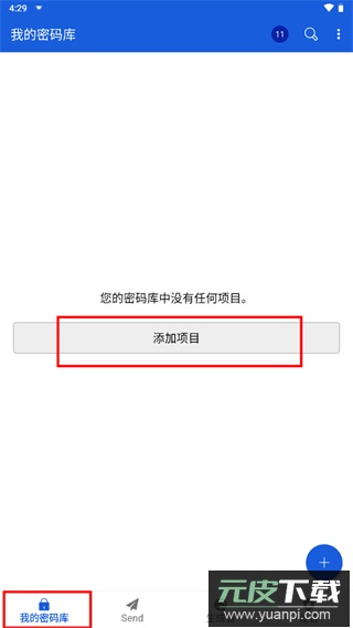 1、进入“我的密码库”选项卡,点击“添加项目”;