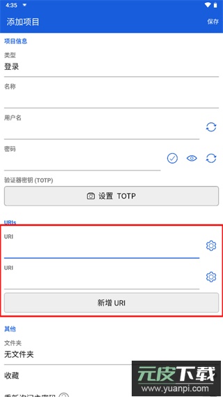4、点击新建URI按钮,输入对应账号的登录网址;