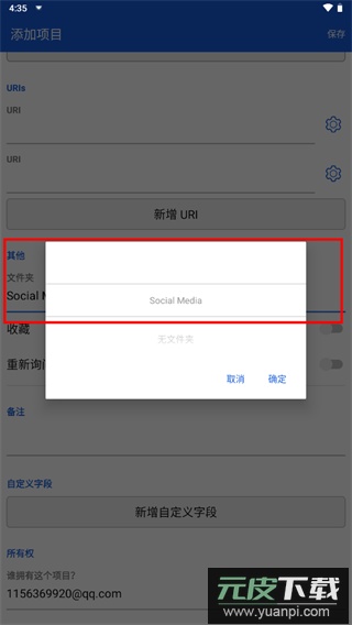 5、从文件夹下拉菜单中选择一个分类,例如之前已创建的社交媒体文件夹。