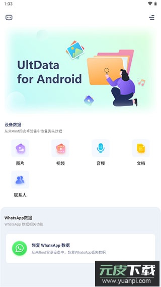 ultdata最新版是一款功能全面的数据恢复工具,能够帮助用户找回多种类型的数据,包括照片、视频、音频文件、文档、联系人信息、短信以及WhatsApp聊天记录等二十余种格式,无论是由于设备损坏、误操作删除、系统故障还是病毒攻击导致的数据丢失,这款软件都能提供有效的恢复方案,相当于为手机中的重要资料增添了一份可靠的保障。