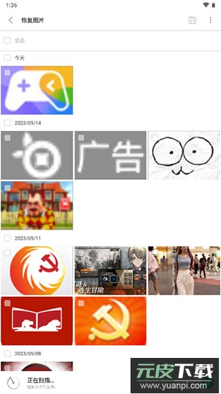 2. 系统将自动开始扫描设备中已删除的图片文件;