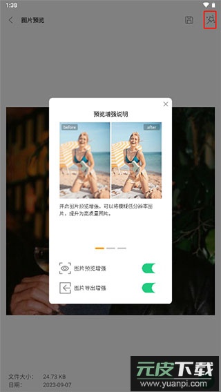 4. 如果图片清晰度不理想,可以点击右上角的星形图标,开启导出增强功能;