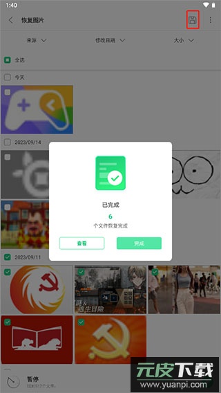 7. 如果需要批量操作,可以手动勾选特定时间段的文件,或直接使用全选功能进行恢复。