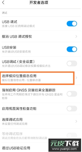3、根据系统提示进入开发者选项,在选择模拟位置信息应用中勾选本软件;