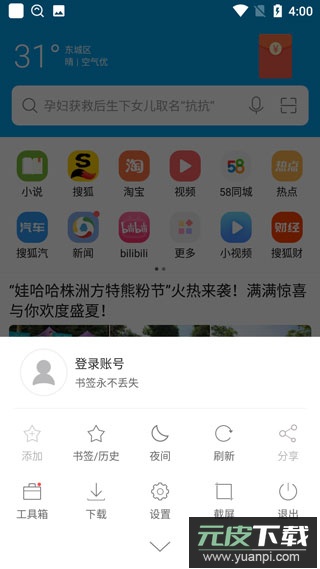 4、点击菜单按钮,能够登录账号或调整浏览器相关设置;