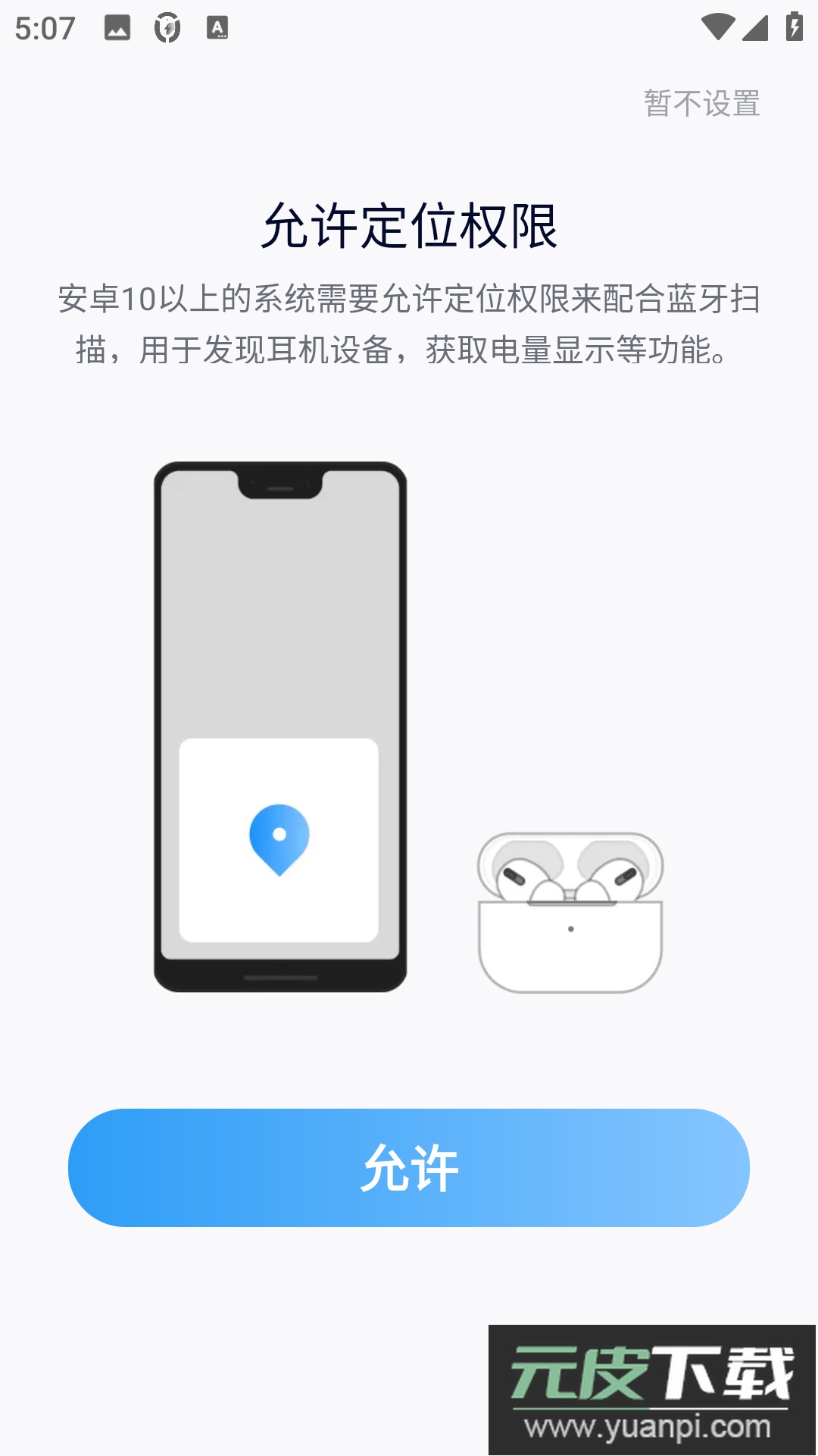 2、根据提示允许应用获取定位权限;